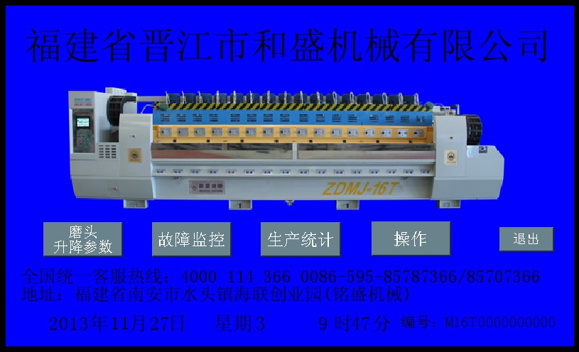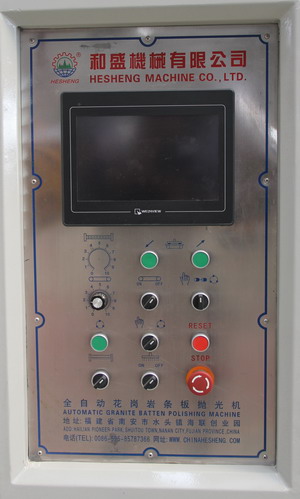 3.該機控制系統(tǒng)采用PLC終端控制,以液晶顯示觸摸屏終端為人機界面進行參數(shù)設(shè)定,設(shè)備運行過程中設(shè)有故障提示等等。該機適用于花崗石條板的連續(xù)磨削及拋光。板材輸送帶、磨盤橫移梁的工作速度均為變頻器調(diào)速;磨盤工作壓力、板材的磨削寬度在設(shè)定值范圍內(nèi)可調(diào)。本機可對板材形狀自動識別,每個磨盤(磨頭)可根據(jù)識別板材的形狀自動升降,同時對板材磨削進行跟蹤記錄。整機均按標(biāo)準(zhǔn)化生產(chǎn),性能穩(wěn)定、故障率低等優(yōu)點。